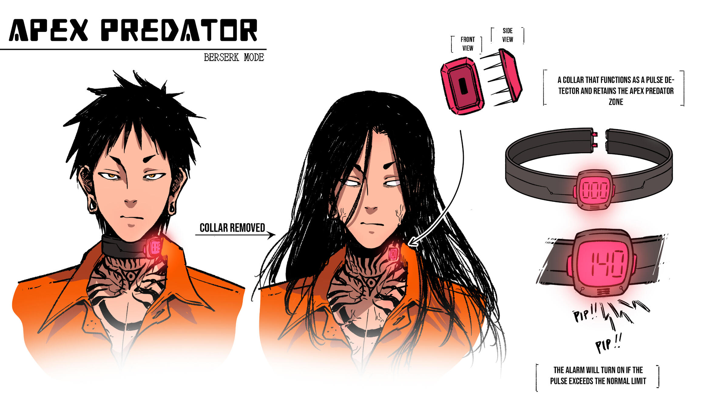 - The safe duration limit in using the Apex Predator zone can only reach 10 minutes. When the duration limit has been reached, the released Collar will automatically be re-stabbed into the user's neck to hold the Apex Predator zone limit.